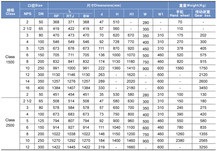 Class 1500 & Class 2500鑄鋼閘閥