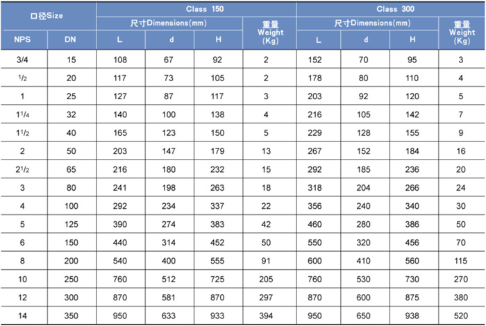 結(jié)構(gòu)長度:ANSI B16.10